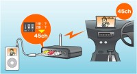 本機は、映像/音声のRCA端子を装備しており、iPodやポータブルDVDなどの映像/音声を、車載テレビなどで受信して楽しむことができる。45、48、50、53chの4チャンネルのUHF帯を選択して使用することが可能だ。商品にはiPod専用のケーブルを付属している。