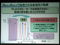 スピーカーはアンダータイプ。10センチオブリコーンスピーカーや専用にチューニングされたバスレフボックスを搭載した。また、重低音再生技術として同社液晶テレビが採用している「MaxxBass」を搭載。さらに、ニュースやセリフが聞き取りやすい新“テレビ「きき楽」”機能も同様に搭載した。