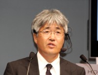 発表会では、まず同社執行役常務 デジタルメディアネットワーク社 副社長の新倉諭氏が、今年度下期の国内テレビ事業戦略について説明。新倉氏は、「国内の薄型テレビ誌上は急速に拡大しており、テレビ=薄型テレビという時代に突入した」と市場を分析。デバイス別の構成比については、「40V型では以前から9割が液晶だが、40〜50V型市場でも、直近では70%程度が液晶となり、構成比が急拡大している」とのデータを示した。