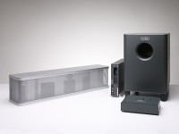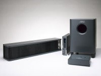 それぞれ、5つのスピーカーユニットを横一列に配置したフロントスピーカーとサブウーファー、デコーダー内蔵の専用デジタルアンプからなるフロントサラウンドシステム。独自のサラウンド技術「NIROフロントサラウンド方式」により臨場感のあるサラウンド再生が可能だ。