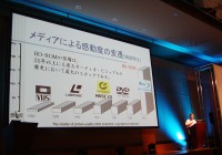 ハイビジョン・エンターテインメントの現況について分析した西谷氏は、「国内では地上デジタル放送が始まり、ハイビジョンテレビが急速に普及してきた。ユーザーの方々のコンテンツに対する志向性も、SDからHDへ、クオリティへのこだわりが生まれつつある」と指摘。「既にカムコーダーの分野で、ハイビジョンはユーザーのスタンダードになりつつある。今後はパーソナルコンテンツの自己録再だけでなく、BD-ROMによる映画・音楽のハイビジョンコンテンツが数多く出回ることにより、それを高品位に楽しむためのテレビやプレーヤーなど、ハードの成長を後押しして行くこととなるだろう」と語った。