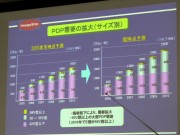 また、PDPの需要、サイズ構成比は、いずれも昨年末時点での予測値を変更したことを明らかにし、「昨年末は、2010年時点でのPDP需要を1,650万台と予測していたが、現時点では2,200万台と予測している」と、価格低下により大幅に需要が拡大すると予想。特に50V型以上の大型PDPが増えると想定し、2010年時点で半数が50V型以上になると予測した。