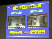A: パネルの多面取りを行うと原価が下がることはご承知の通りだ。それに加え、当社で採用しているALIS方式ではシングルスキャンでフルHDを実現でき、回路モジュールのコストを削減できる。