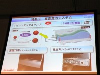 音声部にもこだわった本機は、5.6MHzの高速サンプリングを可能にした「1ビットデジタルアンプ」をAQUOS用に新開発し搭載。5.6MHzのサンプリングはテレビ用としては世界初だという。高精度1チップimageimage変調LSIを採用しており、原音の持つ情報量をほぼそのままに表現が可能となった。