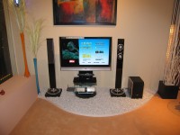 ビクター(JVC)ブースのそのほかのトピック追いかけていこう。まずは「DD-8」という商品化間近の新ホームシアターシステム。写真は同社の液晶テレビとの組み合わせだが、DD-8はDVD内蔵レシーバーアンプを中心としたスピーカー前面3chとサブウーファーからなる3.1chフロントサラウンドシステムである。参考価格は1799ユーロ(27万円前後)。