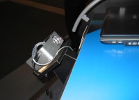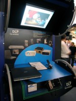 テキサス・インスツルメンツ(TI)のDLPは、オーソドックスなフロントプロジェクターに留まらない。参考展示されたサムソンのポケットプロジェクターは「SP-P300ME」は手帳サイズのDLPプロジェクターである。999ユーロ(15万円前後)。投写距離は50cmから2mという短さを実現。2時間のバッテリー駆動ができACアダプター動作も可能。