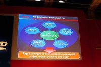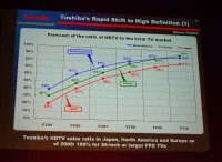 藤井氏はスピーチの冒頭、欧州のAV業界の中でも「テレビのフラットパネル化・HD化」、あるいは機器のネットワーク化をはじめとするパラダイム・シフトが着実に進みつつあることを強調した。欧州コンシューマーの期待が高画質なHDTVに向き始めた今、革新的な技術によって高品位・高密度なコンテンツを収録できるHD DVDが、高画質ディスプレイと優れた相性持つメディアであることを、わかりやすく明解に図式化することが、東芝が欧州の市場で成功するための重要な課題であり、今回の講演において藤井氏が繰り返し主張したポイントであった。