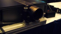 マランツ、オプトマ、JVC(日本ビクター)、RUNCOと今年のEXPOは、アナモフィックレンズをモーターライズで水平移動させ、プロジェクター側でスクイーズしたシネスコ画面をジャストサイズ(2.35:1)で映写する提案が大流行だ。レンズメーカーか機構メーカーがプロジェクター全社に売り込んだのではないか、と憶測したが当たらずといえど遠からずだった。ドイツのSchneider OPTICS社のCine-Digitar Convertersというレンズシステムの展示を第二会場で見つけたのだ!