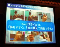はじめにXactiを初めて使うユーザーのために、より手軽に高画質な動画と静止画が撮影できる機能として手ぶれ補正機能が高機能化された。同社独自開発の「手ぶれキャンセラー」は静止画写真撮影時に効果を発揮する機能。撮影時の手ぶれ方向とぶれの量を内蔵ジャイロセンサーにより検出し、それぞれのぶれの成分を打ち消すことによってシャープな画像を作り出すことができる。一方、ムービーの撮影時にはXactiの撮影スタイルにより特有の手ぶれ周波数に対応するアルゴリズムを採用したデジタル手ぶれ補正機能も搭載している。