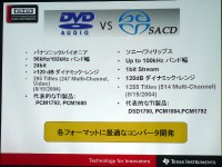 TIに買収されるまでバー・ブラウン社で開発本部長を務めてきた濱崎氏は、「デジタル情報家電市場はCDの登場で幕を開けた。バー・ブラウン社が民生機器に適用できるICを生産開始したことからデジタル情報家電の歴史が始まり、これまで常に先陣を切って開発を続けてきた」と語り、バー・ブラウンならびにTIのオーディオ製品の開発力を強調。SACDやDVDオーディオなどの次世代オーディオ機器にも、それぞれに最適な先端技術を提供してきたとアピールした。また、2002年に開発したDAコンバーター(DAC)「PCM1792」では最大132dBのダイナミックレンジを実現し、非常に高い信号再生能力を可能にしたと説明した。