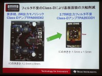 日本テキサス・インスツルメンツ(株)(日本TI)は本日、ポータブルオーディオ向けのICの新製品として、オーディオ・コーデックとClass-Dオーディオ・パワーアンプを開発したと発表。都内にて記者発表会を開催した。