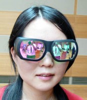 左右の目で色の波長の違う映像を観て、頭のなかでミックスして立体視を得る原理は、昔学年誌などの付録にあった、赤と青の眼鏡をかけて観るアレ(アナグリフ方式というそうです)と同じですね。