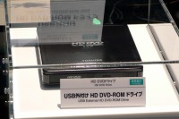 PC用のHD DVDドライブも様々な新モデルが参考出品された。外付けHD DVD-ROMドライブは、「Qosmio G30/697HS」(関連記事)に搭載したドライブをUSB接続にしたもので、11月〜年末中に発売を予定。本機を使用することでHD DVDタイトルをPCで楽しむことが可能になる。接続するPCは「Qosmio G30/697HS」と同等のスペックが必要なため、デュアルコアの2GHzのCPUとGeForce7600以上のグラフィックカードの搭載を推奨している。