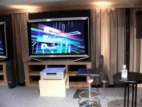 その画質は、現在の薄型大画面テレビと一線を画す水準にある。デモ映像の撮影は許可されなかったが、海外の映像を撮影したオリジナルソースを使用。すぐに気づかされるのが抜群の精細感。遠目のカットから揺れる木の葉の一枚までがくっきりと現れる。さらにそのままカメラが移動してもそのままの精細さが維持される。屋内のシーンでは壁の質感、人肌のリアリティと描写力が高い。コントラストも強力でデモ映像はレッド、ブルー、グリーン、そしてブラックと微妙な色合いを確認できるシーンが含まれており、中間階調の良さも確認できた。奥行き感も抜群だ。