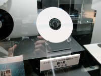 三菱化学メディアからは録画用Blu-ray Discのサンプルが展示された。中にはインクジェットプリンターによるレーベル面印刷に対応したBD-Rもある。同社は既にデータ用のBD-R/-REディスクを発売しているが、録画用のメディアに関しても開発を進めており、近日中に発売を予定しているという。同社の出展内容として、もう一つ目を引いたのが、同社がCD-RやDVD-Rなどで培ってきた有機色素技術をBD-Rに応用したディスクの参考出品だ。こちらは記録膜にDVDなどと同じ有機色素を用いることにより、既存のDVD製造ラインを活かしたBlu-ray Discの製造を実現でき、コストダウンを可能にするというものだ。現在技術の完成度は80%から90%程のレベルにあり、来年初頭より規格の決定、および商品化に向けた開発を進めていくという。