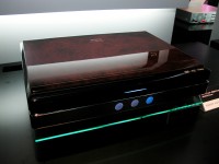 シャープはHDDを内蔵したBD&DVDレコーダーの試作機を展示。本体天面には木目調のパネルをあしらい、高級感を持たせているところが特徴だ。展示説明員によれば「製品の仕様や発売時期については現在のところ全く未定。市場の動向を見極めて発売を検討したい」とのことだ。