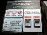 KDDIとNTTドコモのブースでは、デジタルラジオ対応端末やワンセグ対応端末などを展示している。