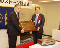 続いてIEEEリージョン10・ディレクターの竹内精一氏より、日本ビクターの代表取締役社長寺田雅彦氏へIEEEマイルストーンの銘板が手渡された。