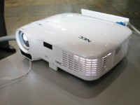 NECビューテクノロジーのブースは、同社の各種ビジネスプロジェクターを展示する。「LT-35J」は本体質量2kgのコンパクトなDLPプロジェクター。3,000ルーメンの明るさを実現したほか、赤外線センサーを応用したオートフォーカス機能、自動台形補正機能を搭載する。