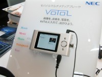 モバイルマルチメディアプレーヤー“VoToL”「PK-M300」は、動画・音楽の再生デモの他に、語学学習サービスをインターネットより提供する「Language Channel」のサービスと組み合わせた楽しみ方を紹介するコーナーも設けている。