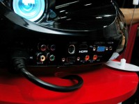 DVD一体型プロジェクター「EMP-TWD3」のデモでは、本体に新しく搭載したPC入力(D-Sub15ピン)の使い方提案も行っている。今回はXbox360をつないでゲームが楽しめるコーナーと、ノートPCをつないでホームシアターが楽しめるコーナーの2つが設けられている。