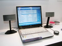 フロントサラウンド・マルチメディアスピーカーシステム「Companion5」(関連ニュース)の展示では、ノートPCに保存された、CDからリッピングしたWMAファイルの再生による、迫力溢れるサラウンドを体験することができる。マルチメディアスピーカー「Companion2 II」は、ノートPCと携帯電話につないでデモを行い、多用途に展開が可能な製品の魅力をアピールしている。