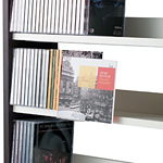 高強度構造が特徴の組み立て式ソフト・ラック。棚板が79mmピッチ可動となっており、CDもしくはDVD/VHSの幅に自由にあわせて使用することが可能だ。それぞれの棚板には、たわみを防ぐ鉄板を補強に使用している。