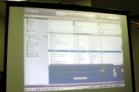 同社はLAN対応のプリントサーバーで高い実績を誇る企業。新製品の開発に関しては、「USBデバイスサーバーの認知拡大のとっかかりの一つとしての意味合いもある」と説明する。デモでは、iPodをUSBデバイスサーバー上で認識させるためのドライバのインストール、PCとの無線接続、音楽データの転送といった一連の操作を解説した。