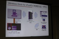 同社は「Wireless Dock for iPod」の発売にあたり、記者発表会を開催した。発表会にはマーケティング本部プロダクトマネージャーの相木伸介氏らが出席し、製品概要の説明や実機を使ったデモなどを行った。