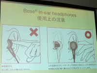 通勤や通学時間など長時間の移動が日常的になっていることや、デジタルオーディオプレーヤーの流行などにより、携帯性に優れたヘッドホンの需要が高まっていることを指摘。「今回の製品は『BOSEのスピーカー、ついに耳の中へ。』がキャッチフレーズ。『TriPortテクノロジー』を搭載し、高い音質を実現したほか、快適な装着感にもこだわった。また『in-ear headphones』はDAPで、『on-ear headphones』はDAPや自宅でのリスニングなど、スタイルに合わせて選択することも可能だ」と述べた。