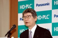 パナソニック コミュニケーションズ(株)藤吉一義氏発表会の冒頭、パナソニック コミュニケーションズ(株)代表取締役社長の藤吉一義氏は、有線LANではケーブル配線が煩雑になる、無線LANではセキュリティが甘く、遮蔽物による速度低下があるなどの問題を挙げ「電源を差し込むだけで家庭内ネットワークが構築できるPLCはこれらの問題を解決する方法だ。将来的には家庭内の家電が全てPLCでネットワーク化されるだろう」と予測した。