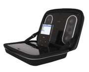 筐体は簡単に収納可能なセカンドバッグ型ハードカバーキャビネットを採用。iPodやイヤホンなどの収納スペースも確保している。
