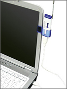 クリップを使って接続した場合本機は、PCのUSBポートに接続するだけでワンセグ放送の視聴が可能となるアンテナ一体型のチューナー機器。付属のソフトを使用することで、視聴だけでなく録画も行うことが可能だ。またEPGの使用も可能で録画予約も簡単に行うことができる。