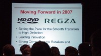 カンファレンスは、東芝アメリカ家電社社長の小坂明生氏のスピーチによって始まった。2006年には東芝がHD DVDを低価格で発売してきたことと、REGZAが北米で成功を収めていることを紹介。2007年にもJD DVDとREGZAのブランドを展開していくことを述べた。