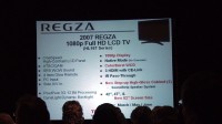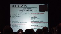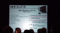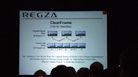 スピーチでは北米における大型テレビの市場が順調に伸びていることを解説したのちに、REGZAの2007年モデルに搭載される各種の高画質化技術を紹介。これは日本向けのモデルでも搭載されている機能に改良が加えられたことに加えて、「ClearFrame(Anti Blur)」という技術の解説が行われている。