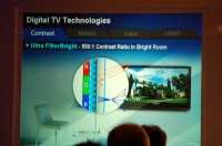 同社液晶テレビの新技術については、バイス・プレジデントのDr.David Steel氏から説明があった。同氏によると、サムスンでは薄型テレビの画質を高めるため、様々な新技術を開発しているとのこと。まずコントラストを高める取り組みでは、「Super Clear」技術や、100,000対1というコントラストを実現する「Local Dimming」、さらに明所コントラスト550対1を実現する「Ultra Filter Bright」などを開発した。