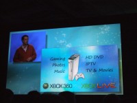 Xbox 360はこれまでに37ヶ国で1040万セットを販売、160タイトルにおよぶハイビジョン対応のゲームソフトを市場に送り出したとして、あらためて事業の成功を高らかに宣言した。加えて、Xbox 360はHD DVDプレーヤーの機能も備えているので、映画を高画質でもっとたくさん楽しみたい方に最適な選択肢となっていると強調した。