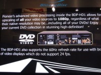 またブースでは、パイオニアがAdvanced PureCinemaとして提唱している1080p+24fps(フレーム/秒)再生の優位性の解説が展示されていた。フィルムの場合は1秒あたり24フレームで製作されているが、家庭のディスプレイではNTSC規格に適合させるために30fpsに変換して表示している。つまり余分なフレームが追加されているのだが、これを解決して製作者の意図どおりの表現を実現しようというのがパイオニアの考え方なのだ。くだんのプラズマモニターとブルーレイ再生専用機にも、この思想が盛り込まれているという。