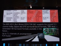 50型のフルHDプラズマモニターPRO-FHD1は、日本でもPDP-5000EXとして発売されている。米国での価格は8000ドル。一方、ブルーレイ再生専用機BDP-HD1は日本では未発売。価格は1500ドルだ。展示をみていくと、BD-ROM、BD-R/RE、DVD-ROM、DVD-R/RWに対応、1080p DVD アップスケーリング機能付き、7.1ch非圧縮音声をサポート(バーブラウン社製のPCM1738 DACを搭載)、ネットワーク上のPCから映像や音楽をストリーミング再生できる機能付き、DLNAやMicrosoft Playstorsureに準拠、とある。間に合わせではない、本気モードの再生専用機であることが伝わってくる。