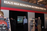 また、他社ブースと同様、プロジェクターの訴求にも熱が入っており、特設シアタールームで、LCOSプロジェクター「SX60」などの展示を行っている。米国でのブランド名は「REALiS」というようだ。LCOSプロジェクターならではの、画素間ピッチの狭い滑らかな映像をアピールしている。