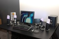 「amBX」は、PC用のサウンドシステム。写真を見てお分かりのように、有機的な印象のユニークなデザインを採用している。デモではPC用ゲームの音声をPCで再生していた。