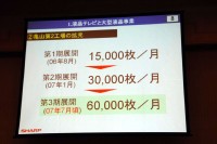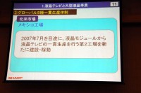 今後の事業展開について触れた町田氏は「差別化を明確にし、持続的成長を図って行く」としながら、柱になる事業は「薄型大画面液晶テレビと太陽電池である」と語った。いずれの事業についても「昨年末には市場の期待に対して、満足な供給ができなかったことが課題としてあげられる。07年度には生産設備を整えて、万全な供給体制で臨みたい」とした。