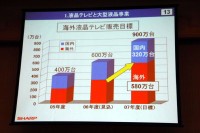 以上、大型モデルを軸とした液晶テレビ全体での、ワールドワイドの販売目標については、06年度に見込んでいた600万台から、07年度は50%増の900万台を示した。内訳については、国内で320万台、海外で580万台とされており、ここでも海外市場にかける同社の意気込みが明らかになっている。