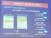 また、これまで同社の訴求ポイントであった「音楽」「デザイン」に、「映像」を加えることを明言。「LISMO Music Search」の機能充実や「au design project」による斬新なデザインの探求に加え、高品位ディスプレイを搭載した端末をリリースしていく、と語った。