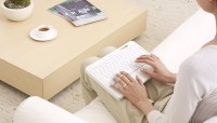 ホワイトのカラーリングに丸形のデザインは、インテリアや他のAV機器との調和を狙っている。大きさも直径27cmとコンパクトだ。本体の操作については、ワイヤレスキーボードのほかにも、付属のリモコンを使ってAV機器と同様の感覚で行うことができる。