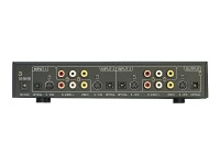 3入力1出力を備えたAVセレクター。各入出力にはS映像、コンポジット映像、光デジタル音声、アナログ音声を搭載している。入力ソースの切り替えは、本体前面のボタンもしくは付属のリモコンで行うことができる。