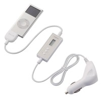 第2世代のiPod nano専用の、ホルダータイプのFMトランスミッター。車のシガーソケットに差し込むだけで、iPodに充電しながら音楽を再生することができる。
