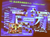 このような状況を改善しようと同社が始めたのが、一昨年の8月にスタートした音楽配信サイト「e-onkyo music」だ。11曲でスタートした同サイトは、いまではCDレベルの16bitの音源を中心に35,000曲を用意し、中には96MHz/24ビットの音源も600曲を揃える。