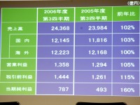 松下電器産業(株)は、2006年度第3四半期(3Q)連結業績の説明会を都内で開催した。2006年度3Qの売上高は、前年同期比2%増の2兆4,368億円、また営業利益は、前年同期比5%増の1,358億円となった。