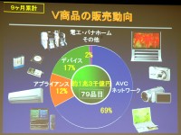 部門別の売り上げでは、AVCネットワーク分野全体で1兆693億円(前年同期比2%増)、そのうち映像・音響機器分野では薄型テレビやデジタルカメラなどのデジタルAV商品の売上が増加したことにより、5,167億円(前年同期比4%増)となった。また子会社である日本ビクターはAV機器などの不振により、前年同期比17%減の1,763億円となった。